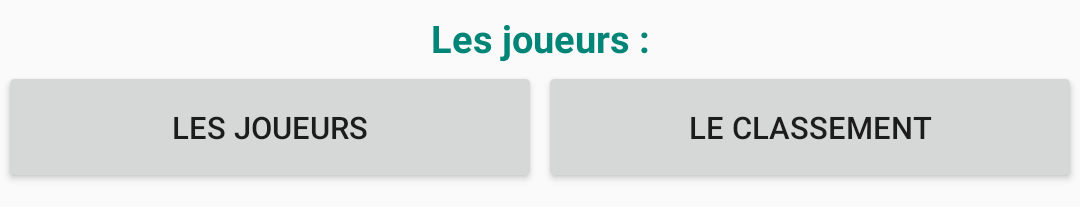 Sur la page d'accueil, ces deux boutons permettent de consulter la liste des joueurs inscrits et le classement actuel.