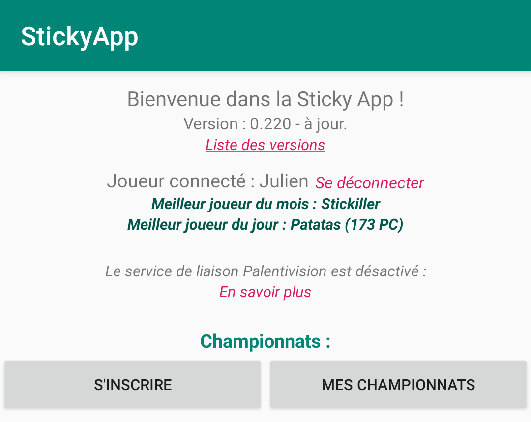 Le bouton de gauche permet de s'inscrire au prochain championnat : il se colore en rouge si au moins