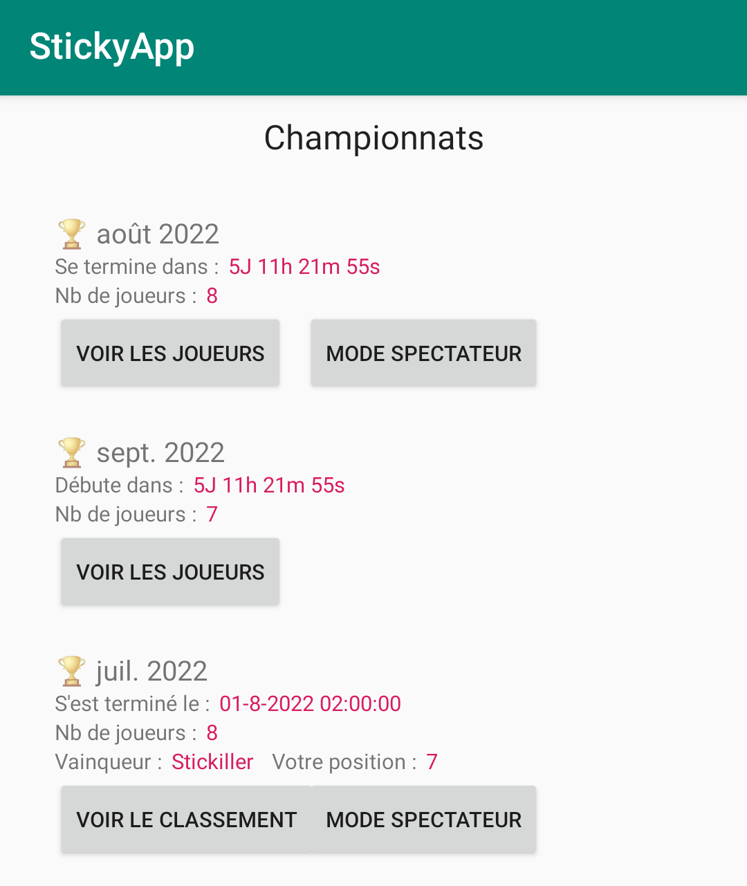 mode spectateur est disponible pour suivre les parties en cours des championnats en cours