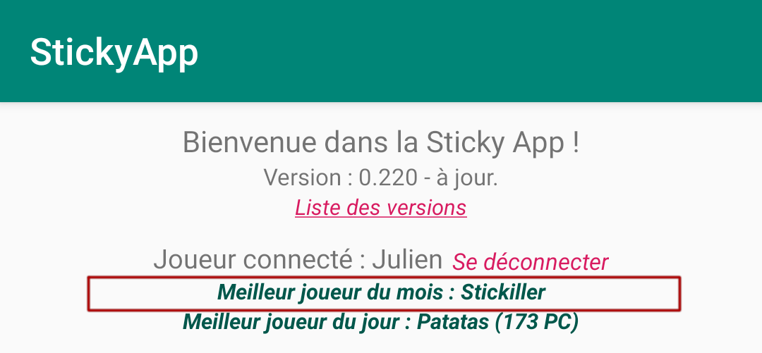 Le joueur vainqueur du championnat du mois précédent est mis à l'honneur sur l'écran d'accueil de l'application en tant que "meilleur joueur du mois".