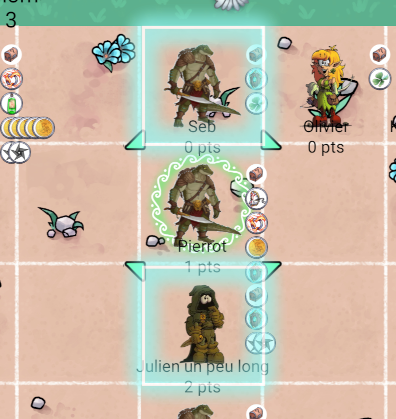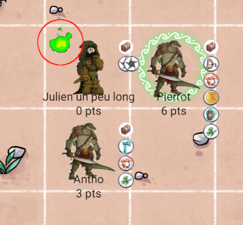 L'icône entourée en rouge indique que le voleur est empoisonné : il ne lancera qu'un seul dé lors de sa prochaine