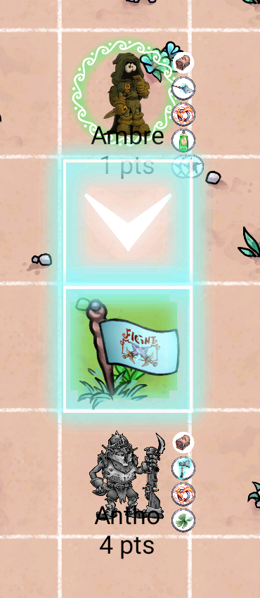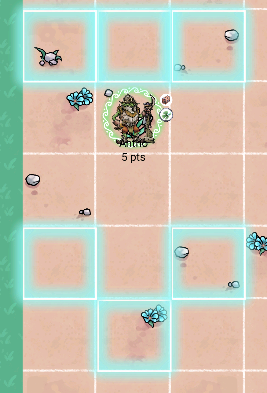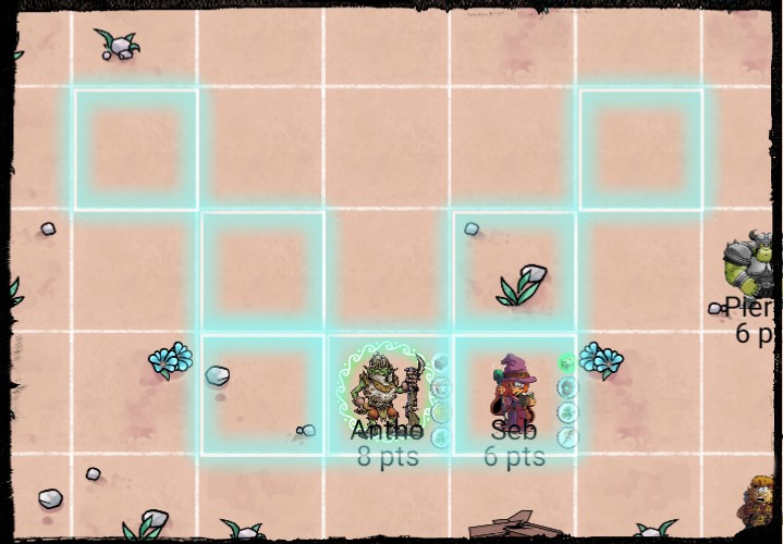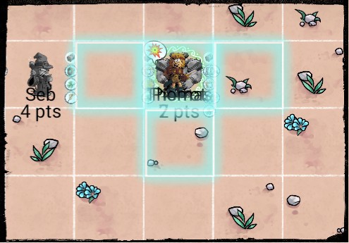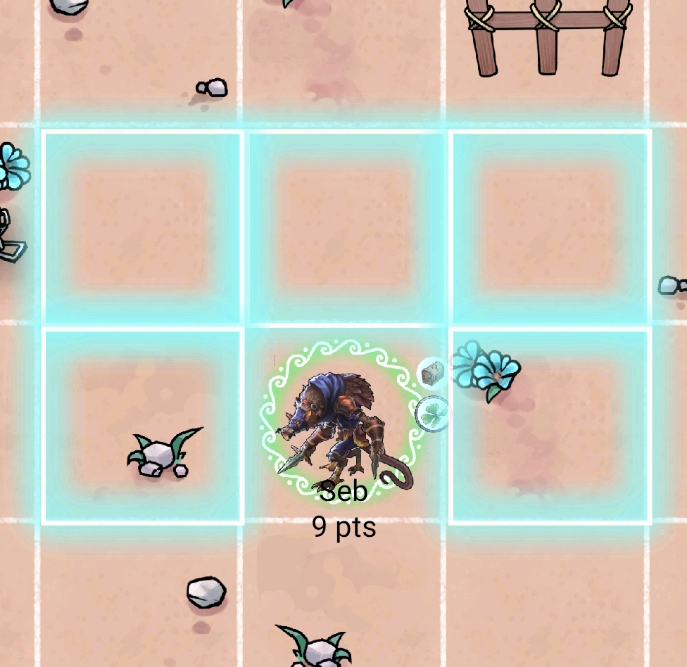 Lors des déplacements tactiques, le personnage peut avancer d'une case ou se rendre sur l'une des 8 cases adjacentes à sa position sur laquelle se trouve un adversaire.