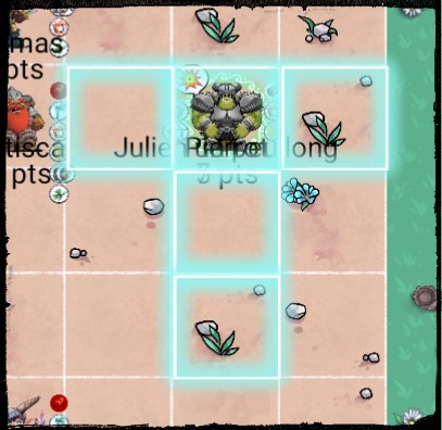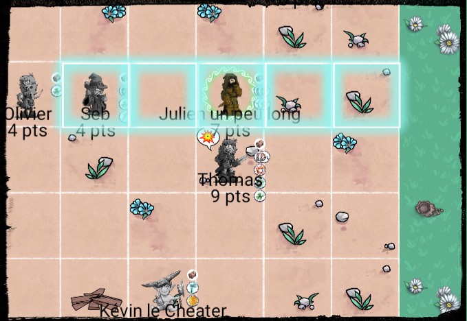 Lors de la phase de dérapage, le gobelin peut se déplacer sur les deux cases situées à sa droite et à sa gauche.