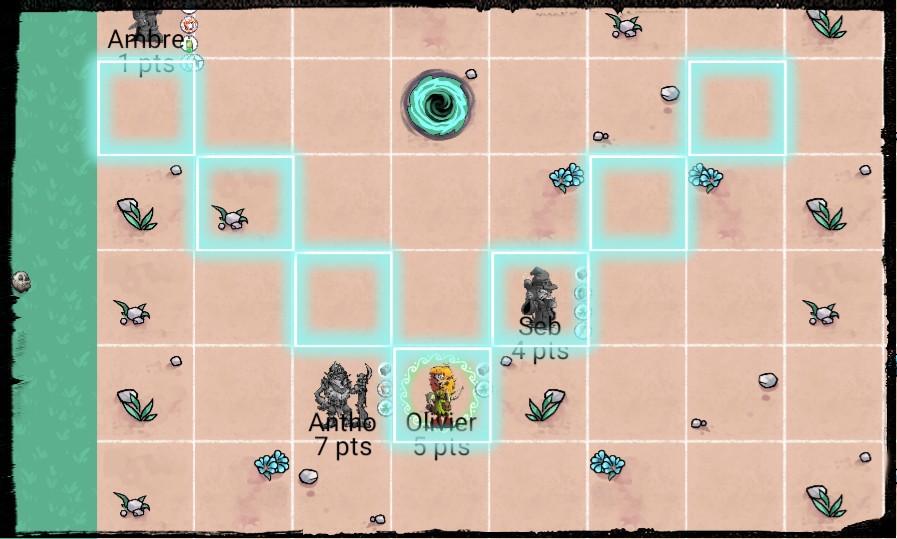 La magicienne peut se téléporter sur les trois cases en surbrillance.
