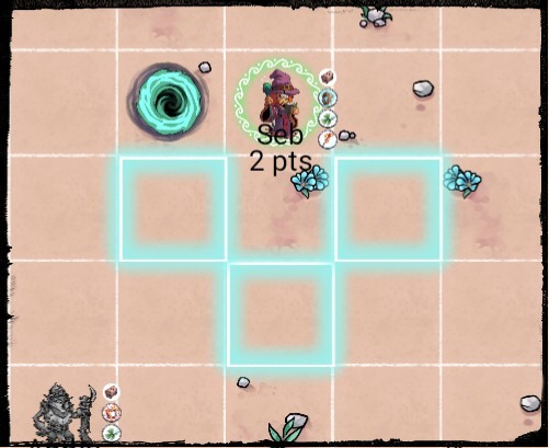 Le personnage peut déraper sur le côté (sur les cases situées juste à sa droite et juste à sa gauche).